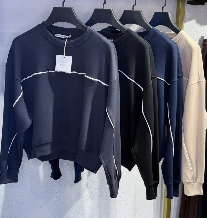 این سوییشرتهای OYSHO Join Life با اون خط سفید مینیمالشون واقعاً خاص و تمیزن! اونقدر نرم و سبککه هم برای استایل خونه، هم برای بیرون با یه شلوار گشاد یا لگ اسپرت، عاالی میشن.